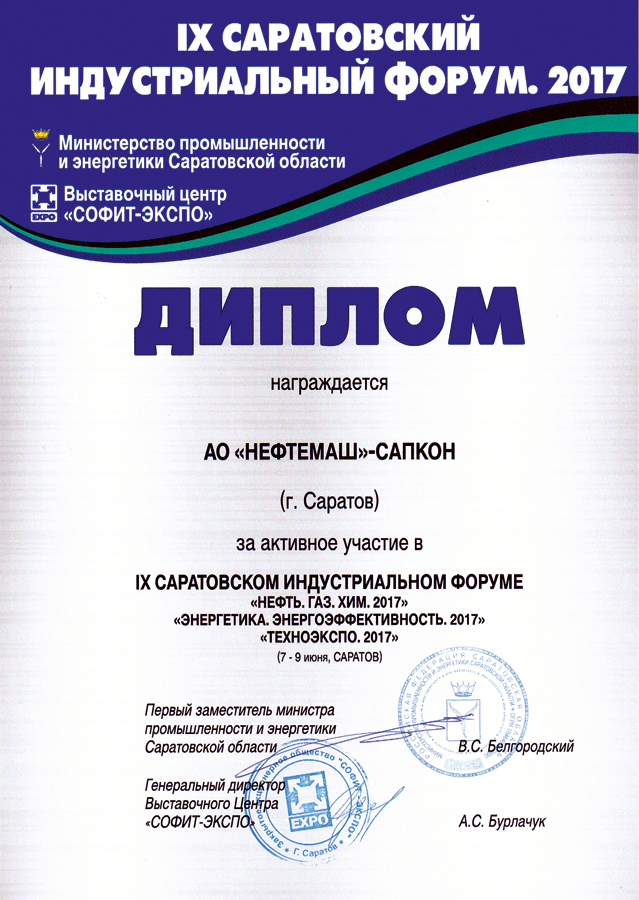 АО «НЕФТЕМАШ»-САПКОН получило специальный приз