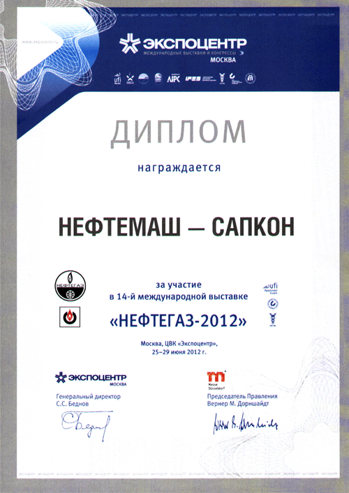 За участие в 14-й международной выставке "НЕФТЕГАЗ-2012"