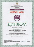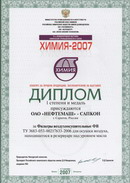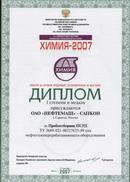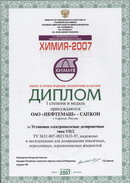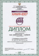 В соответствии с условиями конкурса на лучшую экспонируемую продукцию, проводимого в рамках международной выставки “Химия – 2007” (г. Москва, ЗАО “Экспоцентр”) предприятию АО “НЕФТЕМАШ” – САПКОН (г. Саратов) 4 сентября 2007 года вручены Дипломы и медали, в том числе: